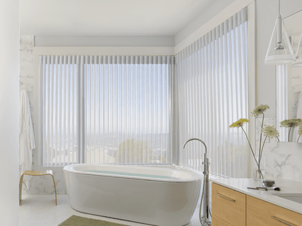 Every bathroom is unique. Customize and dress your bathroom windows with custom blinds, shades or shutters. We offer a huge selection of Hunter Douglas custom window coverings for any style; modern or traditional bathroom decor.